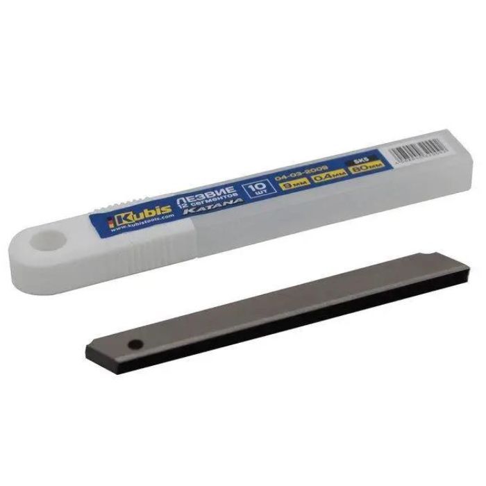Лезо 9*80*0.4 мм KATANA, SK5, 12 сегментів, 10 шт ідеально підходить для використання в будівельних та ремонтних роботах. Воно дозволяє зручно та швидко різати картон, папір та пластик, що робить його незамінним інструментом для кожного майстра.