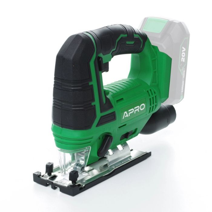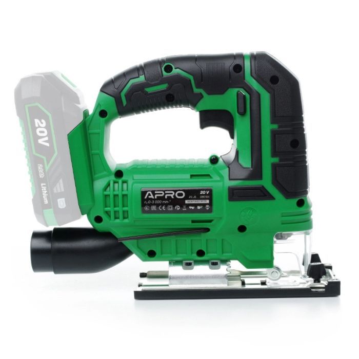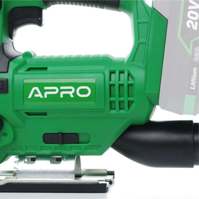 Лобзик акумуляторний APRO 20В, 20JS, без АКБВібраційне навантаження: 8,12 м/с 2Полегшення роботи20 JS оснащений системою здування тирси, завдяки чому Ваша робоча поверхня завжди буде в належному стані, а місце різу - на виду.