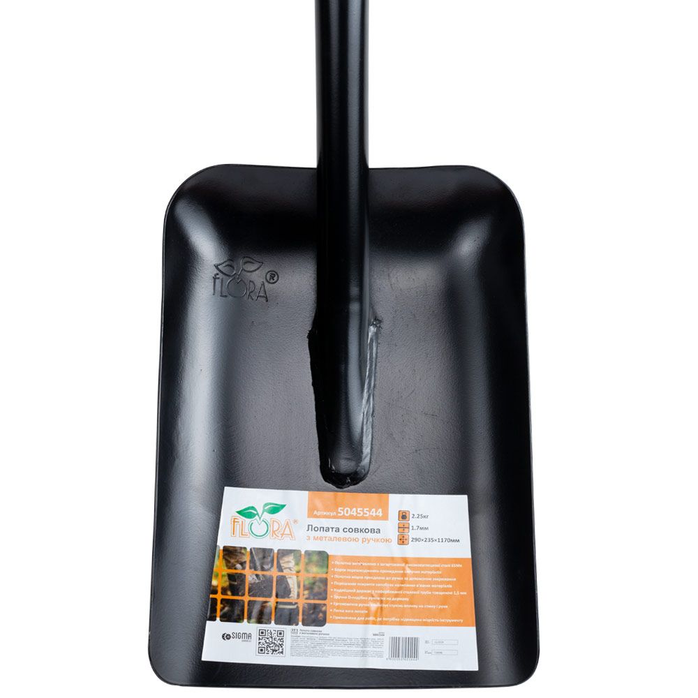 Лопата совкова з металевою ручкою 2902351170мм 2.25кг FLORA (5045544) це ручний інструмент, призначений для копання, розчищення або перенесення ґрунтів та інших сипучих і рихлих матеріалів.