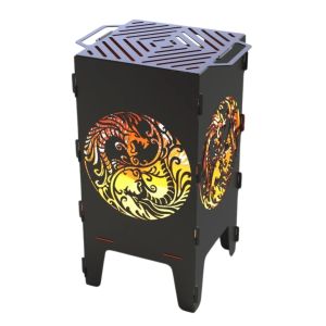 Мангал-барбекю Carino Інь і Янь — розбірна модель з символічним дизайном, що поєднує практичність і виразний зовнішній вигляд. Декоративні вирізи створюють ефект підсвічування під час горіння та додають атмосферності зоні відпочинку. Метал товщиною 3 мм забезпечує надійність і тривалий ресурс використання.