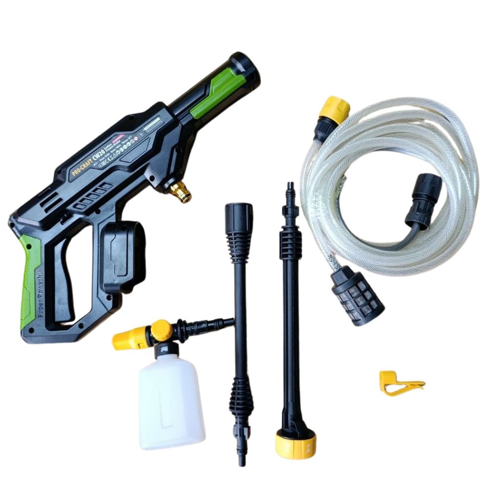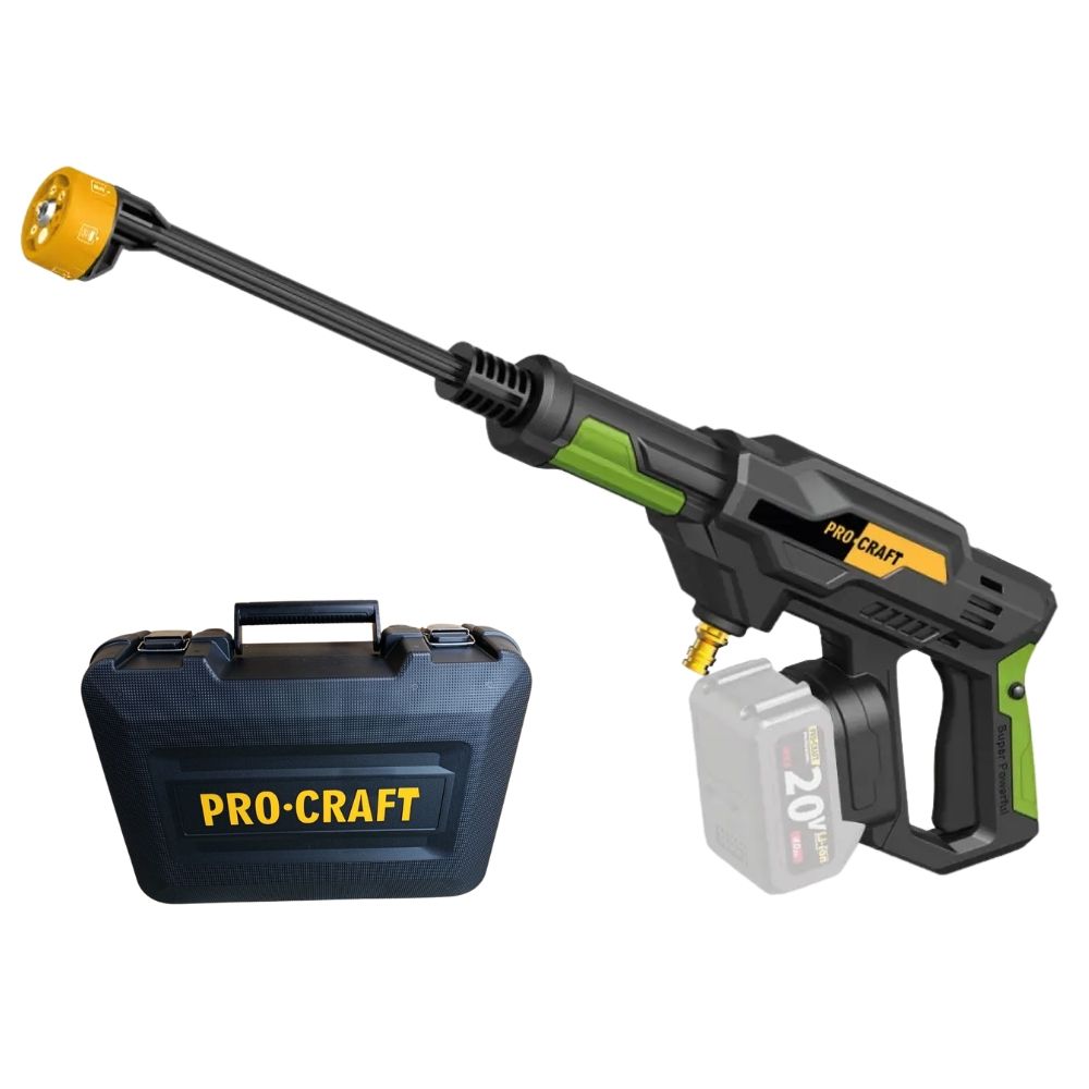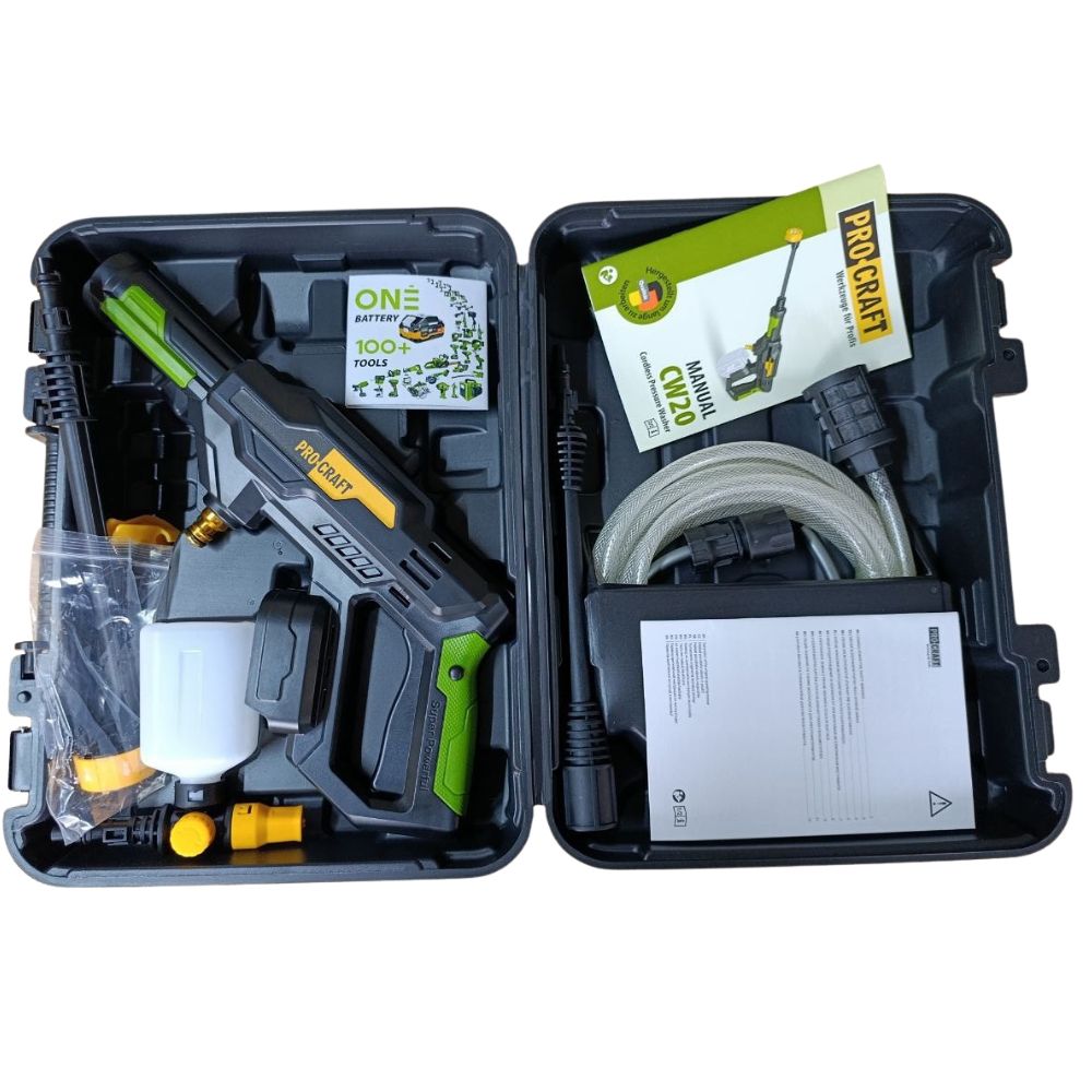 Procraft CW20 — компактна акумуляторна мийка високого тиску, призначена для автономного використання.