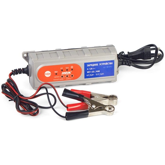 Зарядний пристрій Miol 0,8-3,8 А, 6-12 В — компактний інтелектуальний зарядний блок для автомобільних і мотоакумуляторів. Підтримує зарядку батарей напругою 6 або 12 В із струмом до 3,8 А, що робить його універсальним для різних типів акумуляторів.