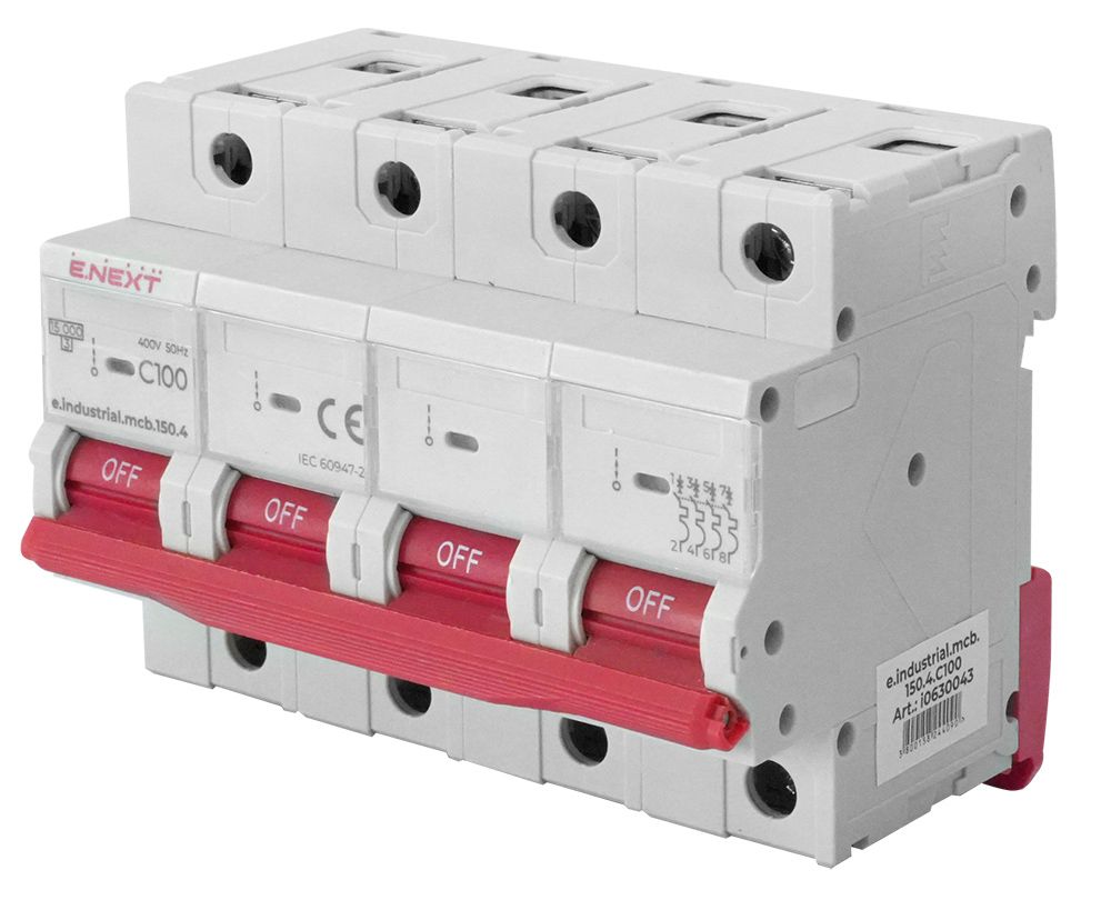 Модульний автоматичний вимикач e.industrial.mcb.150.4.C100 призначений для захисту низьковольтних електричних мереж від перевантажень і коротких замикань, а також для оперативних комутацій. Виконання на 4 полюси забезпечує застосування у трифазних мережах із нейтраллю.