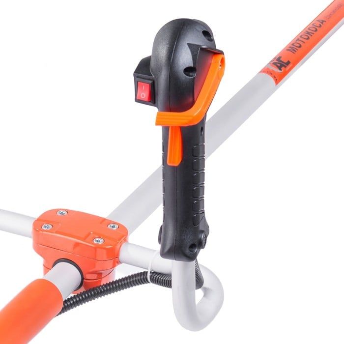 Ця мотокоса ідеально підходить для обрізування трави, кущів, освітлення краю газону, а також для робіт на важкодоступних ділянках.