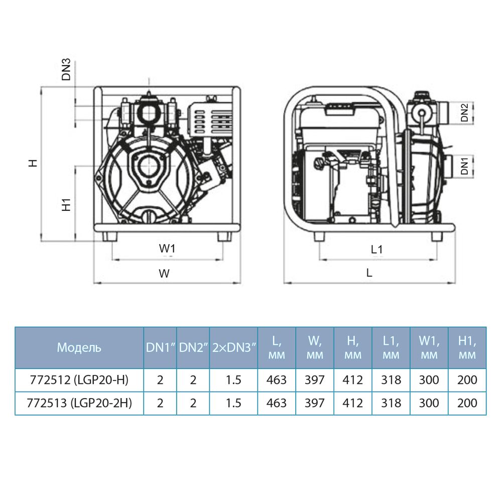 Мотопомпа 6.5 к.с. Hmax 55м Qmax 30м/год (4-х тактний) LEO LGP20-H (772512)