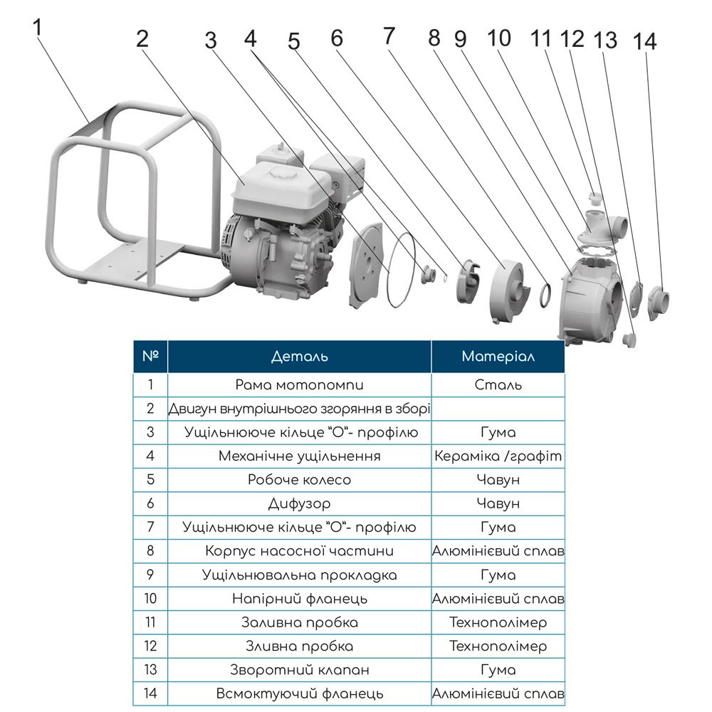 Робоче колесо: чавун з антикорозійною обробкою