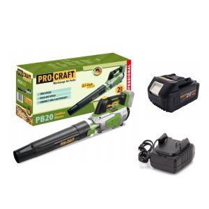 Procraft PB20 — зручна та ефективна акумуляторна повітродувка, яка значно полегшує прибирання ділянок, садів або будівельних майданчиків. Працює від 20 В акумулятора Li-Ion, забезпечуючи повну мобільність та незалежність від електромережі. Сумісність з акумуляторами ємністю 2, 4 і 8 А·год дає можливість вибирати оптимальне джерело живлення для конкретних завдань.