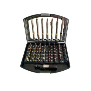 Цей набір з 56 предметів забезпечує все необхідне для різних завдань, від монтажу до ремонту, завдяки широкому спектру біт та зручному тримачу.