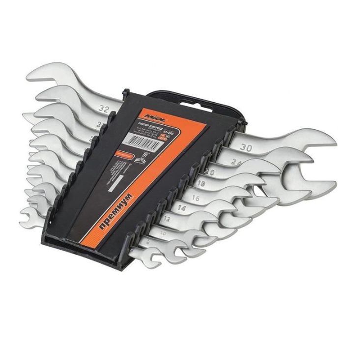 Набір ключів ріжкових Cr-V сатин, 10шт (6-32мм), посиленої міцності, PREMIUM - це високоякісний набір ключів, який виготовлений з хром-ванадієвої сталі, що забезпечує його міцність і тривалу службу. Набір включає 10 ключів з робочими розмірами від 67 мм до 3032 мм, що задовольнять потреби в різних розмірах. Кожен ключ має пряму форму, що забезпечує зручність використання. Набір має посилений дизайн, що додає йому додаткової міцності і стабільності. Завдяки своїм унікальним властивостям і перевагам, цей набір ключів стане незамінним інструментом для будь-якого майстра або автолюбителя. Вага набору інструменту складає 1,858 кг.