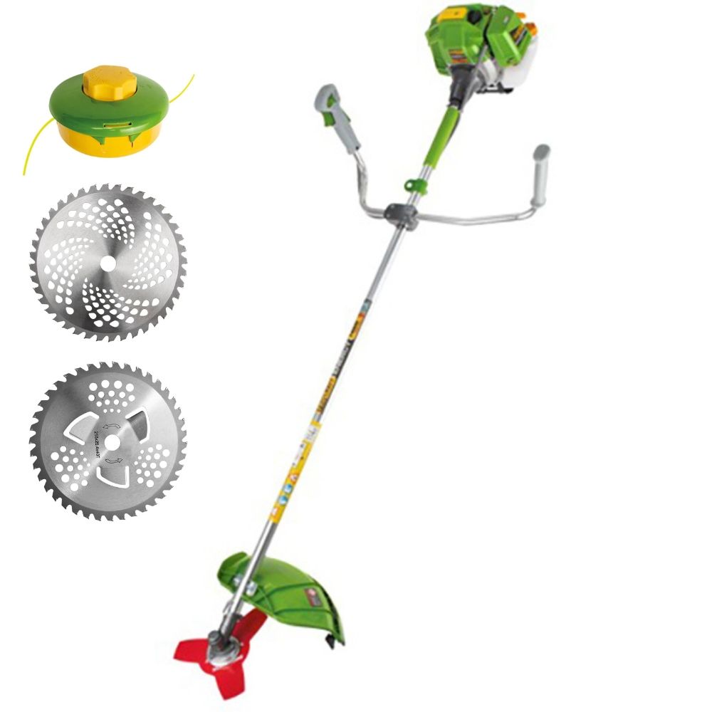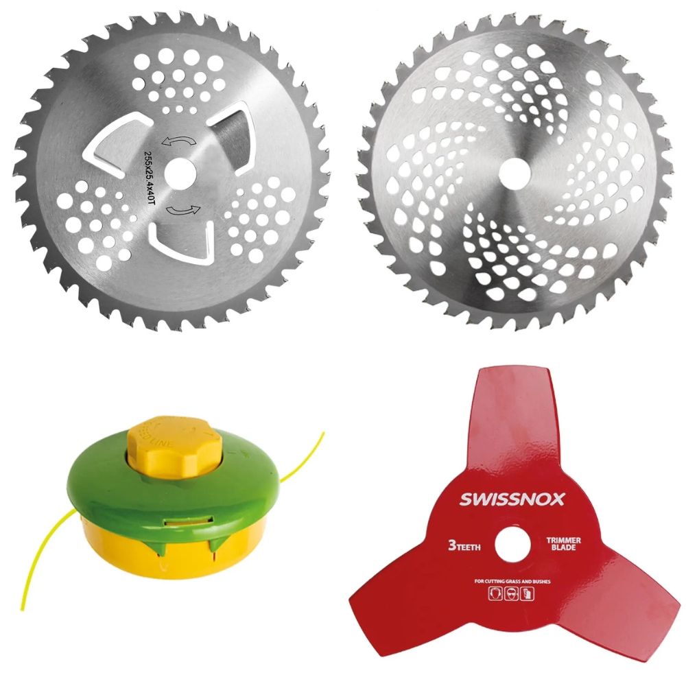 Також у комплекті є три види дисків: 2 побідитові диски 40Т та один диск 3Т, що дозволяє працювати з жорсткими бур'янами та чагарниками.
