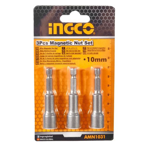 Набір магнітних торцевих головок 10 мм 1/4"65 мм 3 шт. INGCO ідеально підходить для використання в будівництві, ремонті, автомобільній промисловості та багатьох інших сферах. Використовуйте цей набір для зручного та швидкого закручування або відкручування гвинтів різного розміру.