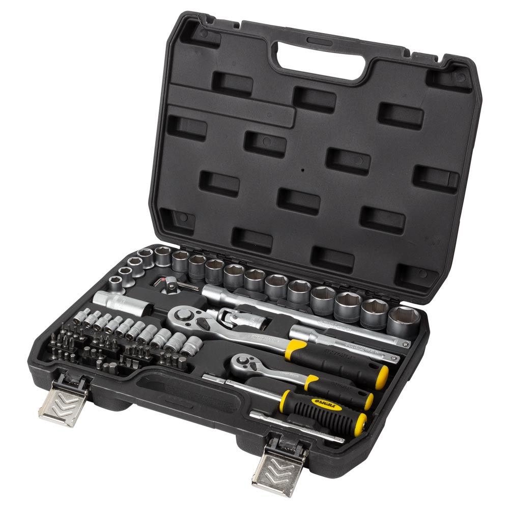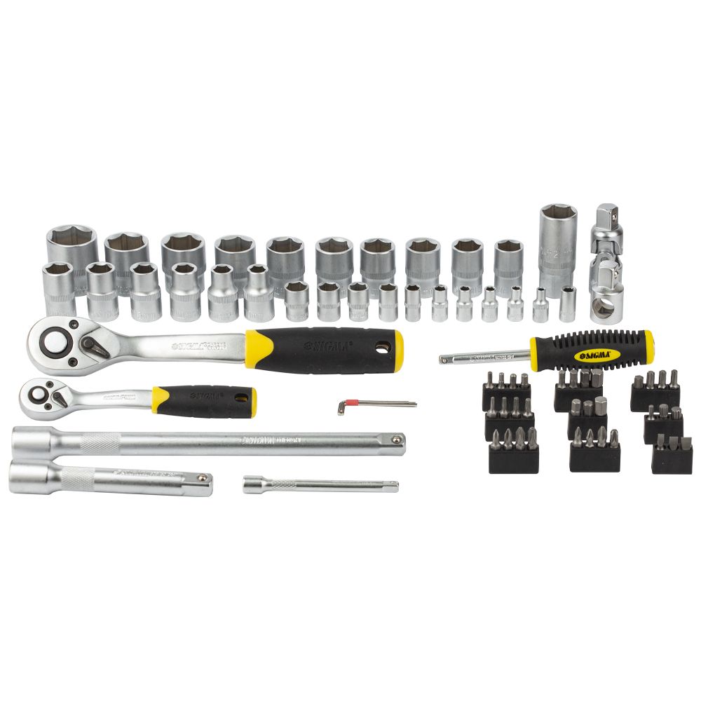 Набір насадок торцевих і біт 1/4", 1/2" 72шт CrV mid SIGMA (6003741) призначений для роботи з різьбовими з'єднаннями при ремонті і обслуговуванні автомобілів. Інструменти виготовлені з вуглецевої сталі і мають оцинковане покриття. Поставляються в компактному пластмасовому футлярі.