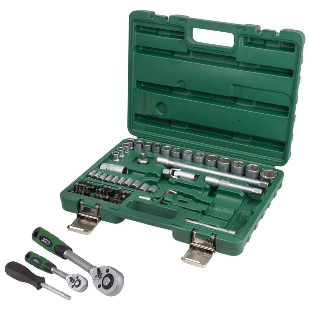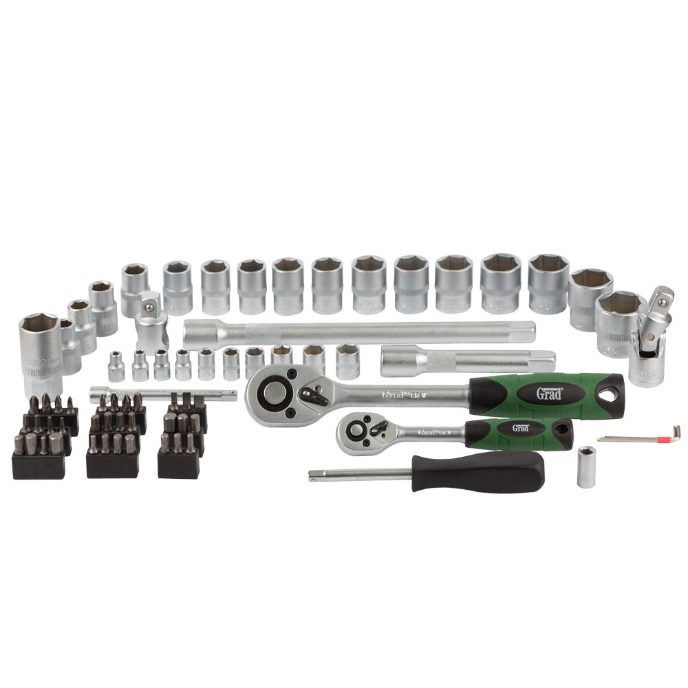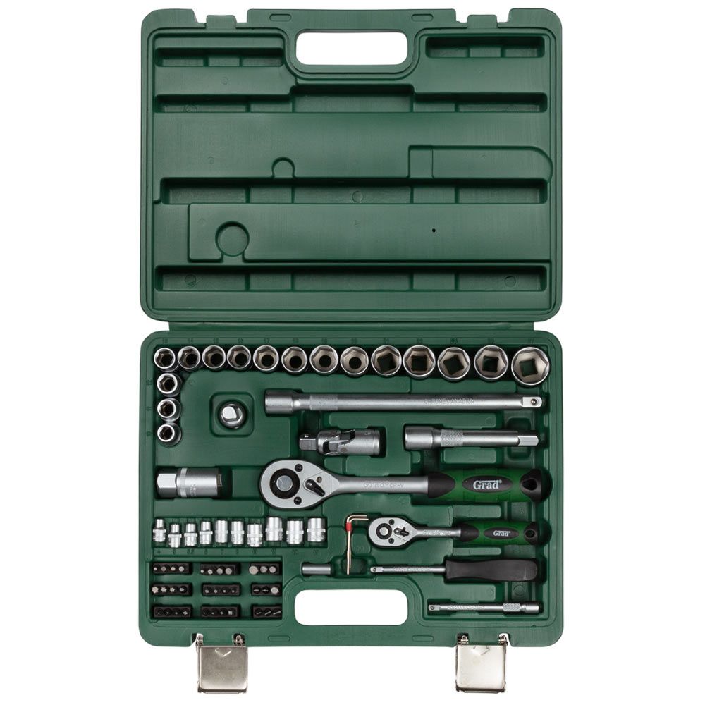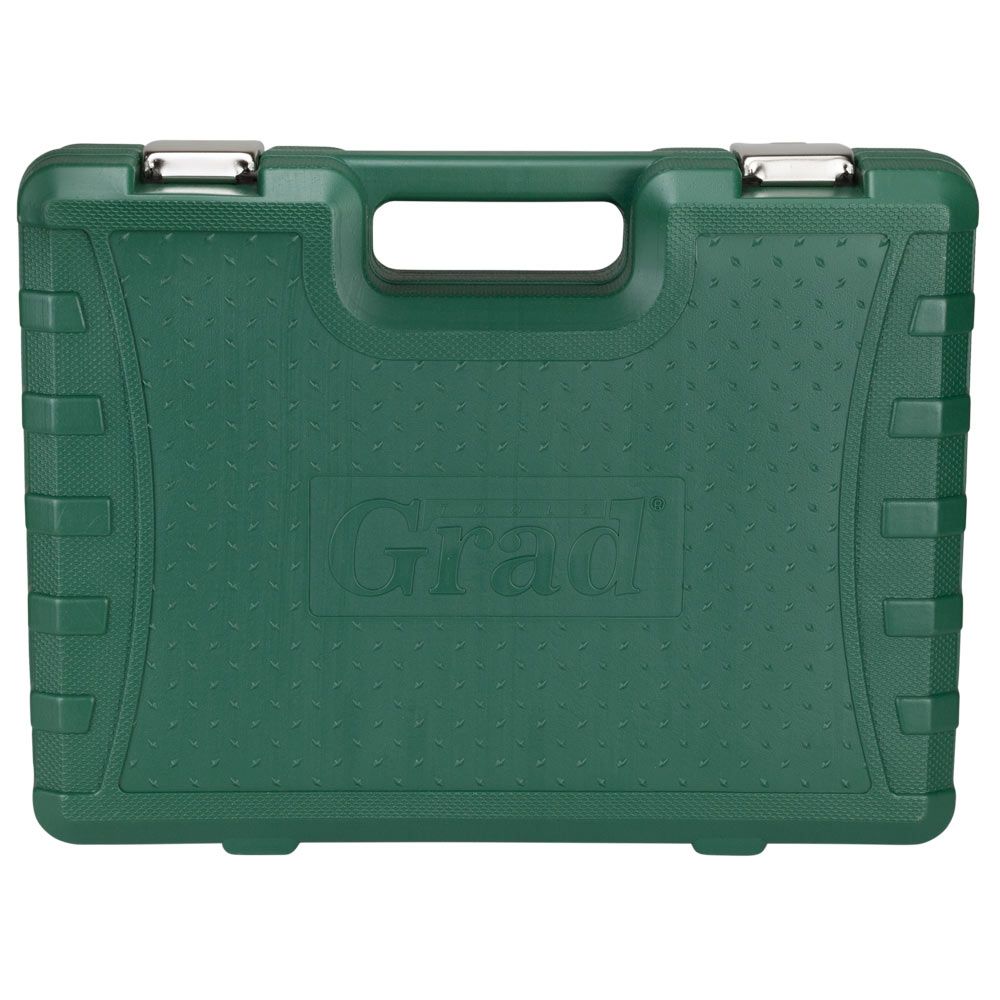 Набори GRAD - лінійка для побутового використання. Набори підходять як для виконання нескладного автомобільного ремонту, так і для побутового застосування. Інструменти виготовлені з міцної інструментальної сталі і мають тришарове покриття (Nickel X2 + Chrome). Для комфортного зберігання та транспортування, набори поставляються в кейсі, який виготовлений з міцного АБС-пластику з металевими замками.