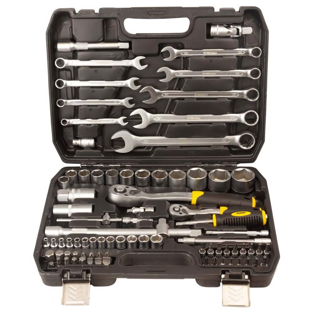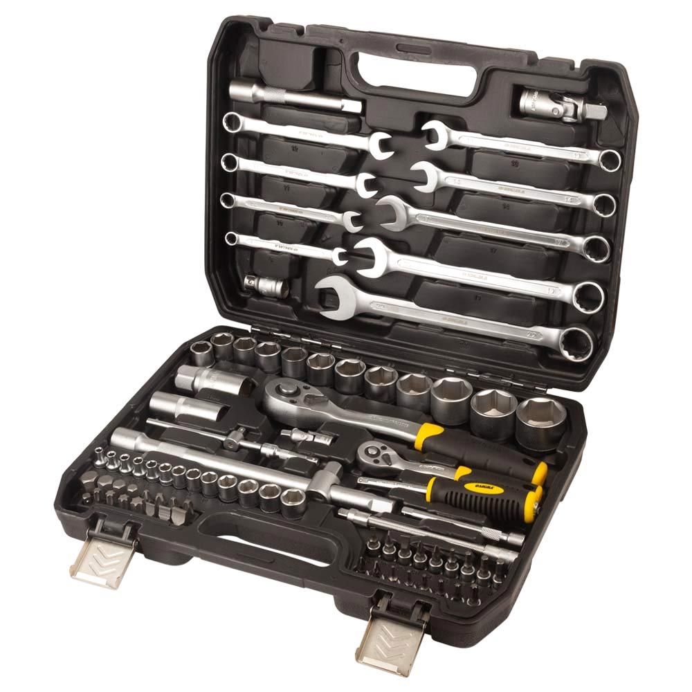 Набір насадок торцевих і біт 1/4 ", 1/2" 82шт CrV mid SIGMA (6001551) призначений для роботи з різьбовими з'єднаннями при ремонті і обслуговуванні автомобілів. Інструменти виготовлені з хромванадієва стали і мають матове покриття. Поставляються в ударопрочном, пластмасовому кейсі.