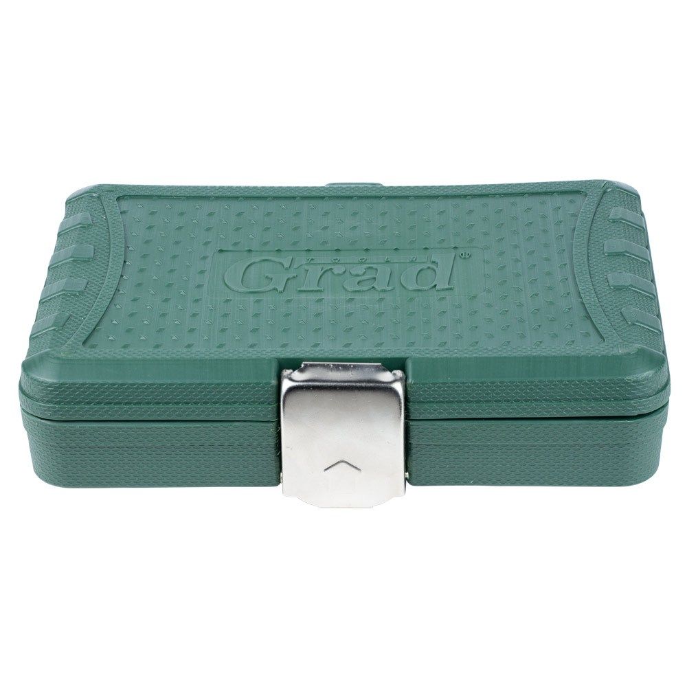Набори GRAD - лінійка для побутового використання. Набори підходять як для виконання нескладного автомобільного ремонту, так і для побутового застосування. Інструменти виготовлені з міцної інструментальної сталі і мають тришарове покриття (Nickel X2 + Chrome). Для комфортного зберігання та транспортування, набори поставляються в кейсі, який виготовлений з міцного АБС-пластику з металевими замками.