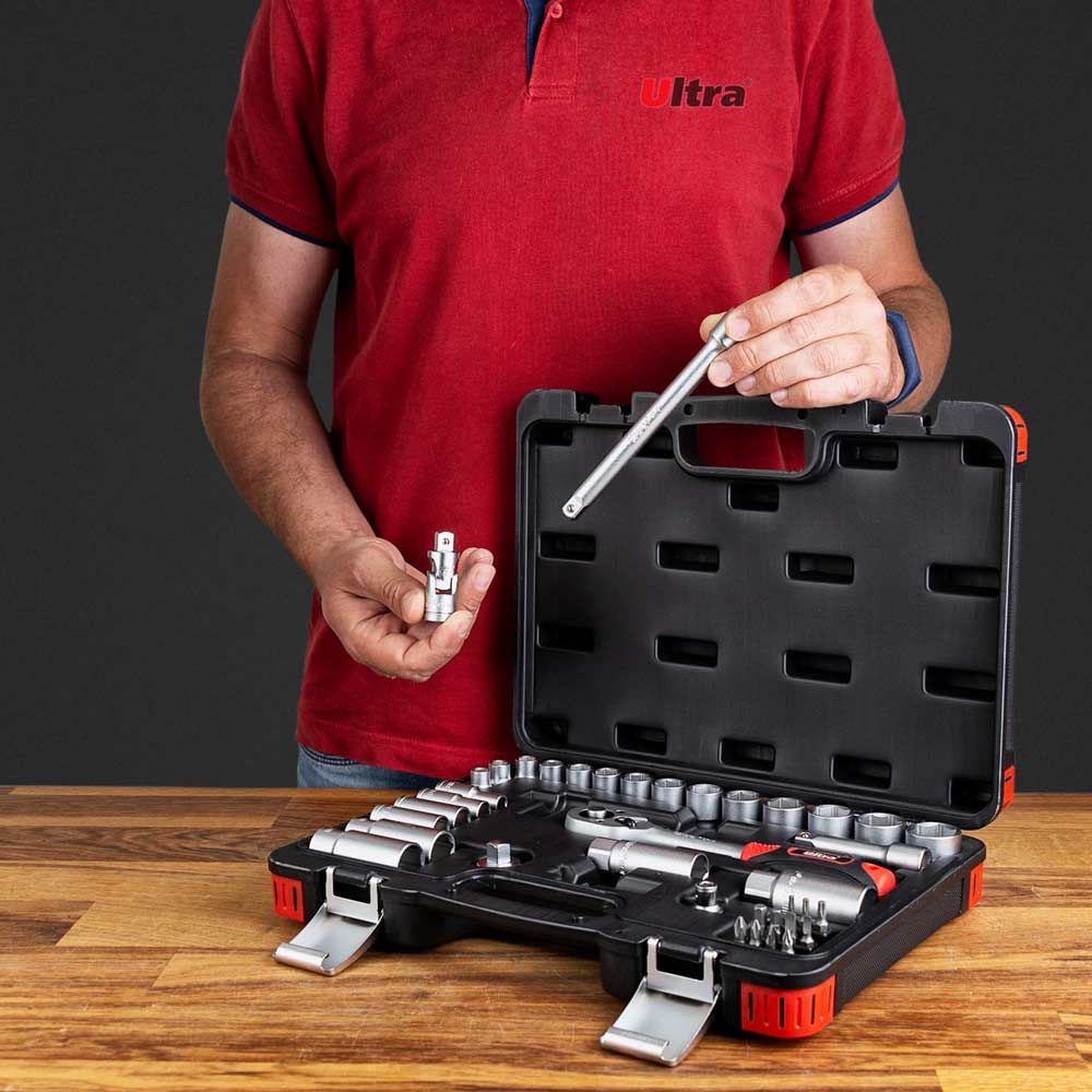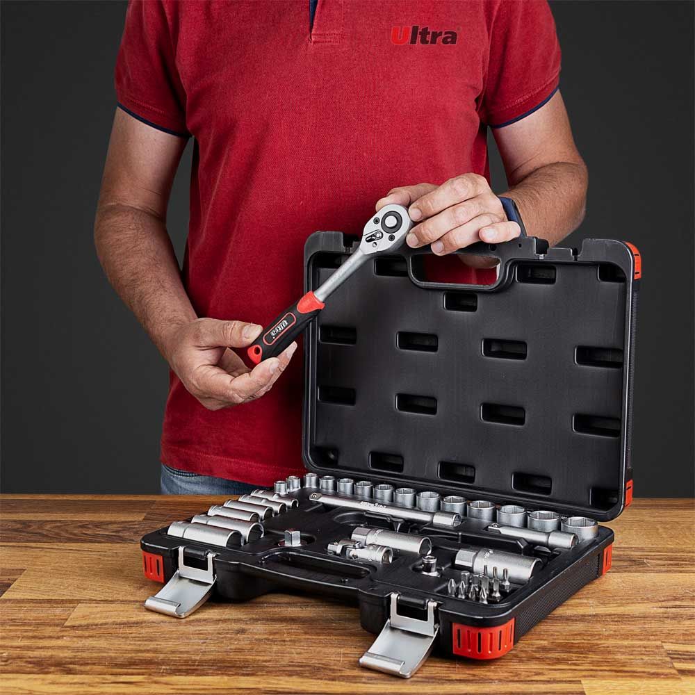Набори інструментів Ultra призначені для професійного використання майстрами на СТО та в автомайстернях. Дані набори здатні витримати щоденні великі навантаження.
