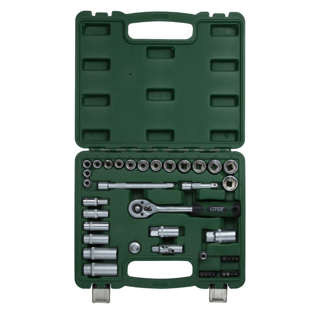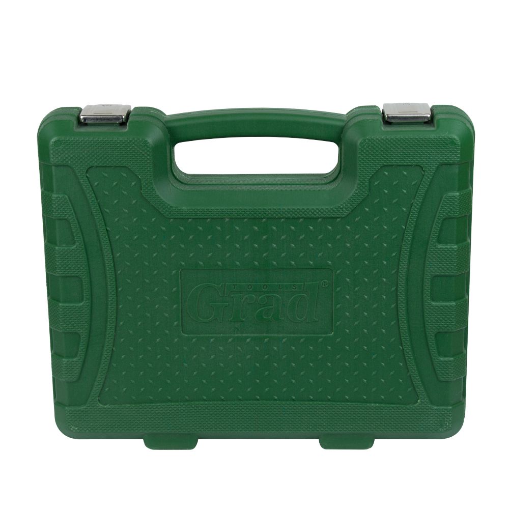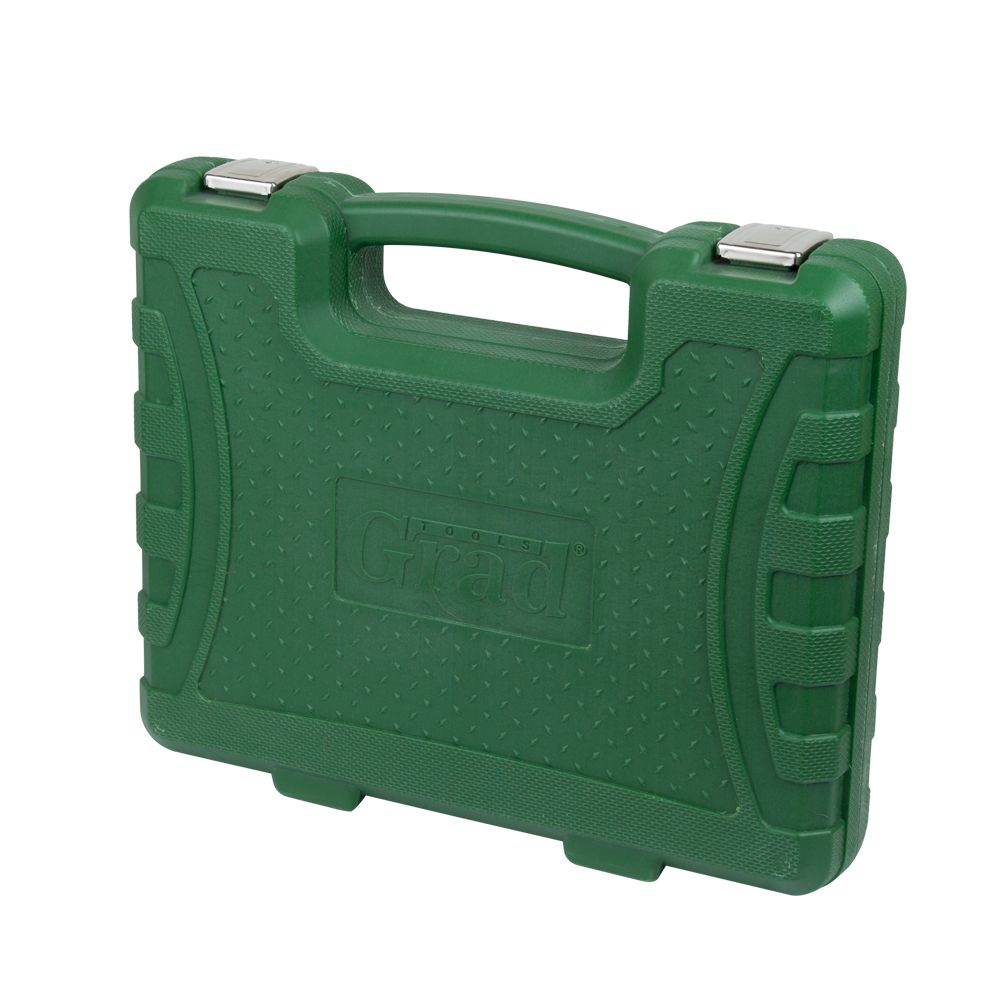 Набори GRAD - лінійка для побутового використання. Набори підходять як для виконання нескладного автомобільного ремонту, так і для побутового застосування. Інструменти виготовлені з міцної інструментальної сталі і мають тришарове покриття (Nickel X2 + Chrome). Для комфортного зберігання та транспортування, набори поставляються в кейсі, який виготовлений з міцного АБС-пластику з металевими замками.