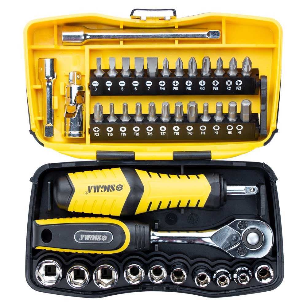 Набір насадок торцевих і біти 1/4" 39шт CrV SIGMA (6003571) - виготовлений з CrV і призначений для монтажу і демонтажу різьбових з'єднань.