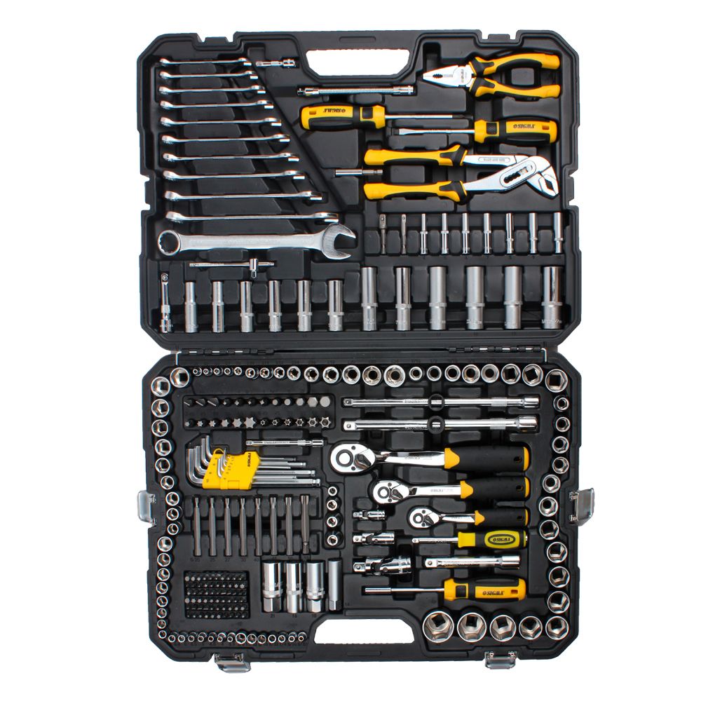 5, 7, 8, 9, TS 6, 8, 10, TW 1, 2, 3, 4, AD (адаптер) Викрутка-бітотримач з магнітом 240 мм Викрутка рукоятка Рукоятка з храповим механізмом і реверсом (72 зуба) 1/4",1/2",3/8" Адаптер з отвором для воротка 3/8"(F)1/2"(M), 3/8"(М)1/2"(F) Насадки дюймові 1/4": 3/8", 11/32”, 5/16”, 9/32”, 1/4", 5/32", 3/16" Насадки дюймові 1/2": 7/16", 1/2", 9/16", 5/8", 11/16", 3/4", 13/16", 7/8" Насадки TORX 1/4": E4, E5, E6, E7, E8 Насадки TORX 3/8": E10, E11, E12, E14 Насадки TORX 1/2": E16, E18, E20, E22, E24 Насадки подовжені 1/4": 4, 5, 6, 7, 8, 9, 10 мм Насадки подовжені 3/8": 10, 11, 12, 13, 14, 15 мм Насадки подовжені 1/2": 15, 16, 17, 18, 19, 22 мм Адаптер для шурупокрута 1/4"1/4" Кліщі переставні для труб 250 мм Викрутка PH2100 мм, SL6100 мм Подовжувач гнучкий 1/4" Плоскогубці 180 мм