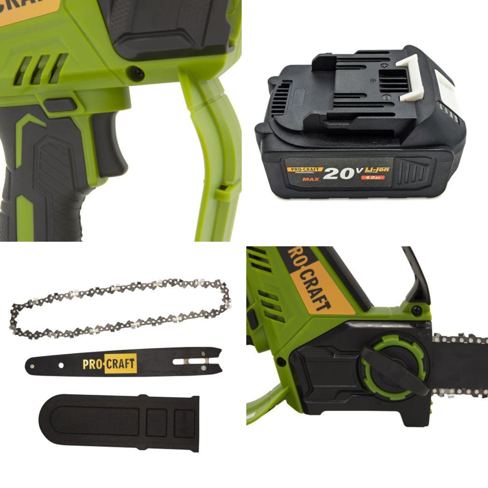 Інші унікальні властивості та переваги набору Пила ланцюгова акумуляторна PRO-CRAFT PKA30/Батарея 20/4UNIVERSAL/Зарядний пристрій 20/1/Олива 1л: - Легка та зручна у використанні - Компактний розмір, що дозволяє зберігати та переносити без зайвих проблем - Низький рівень шуму та вібрацій - Висока якість виконання