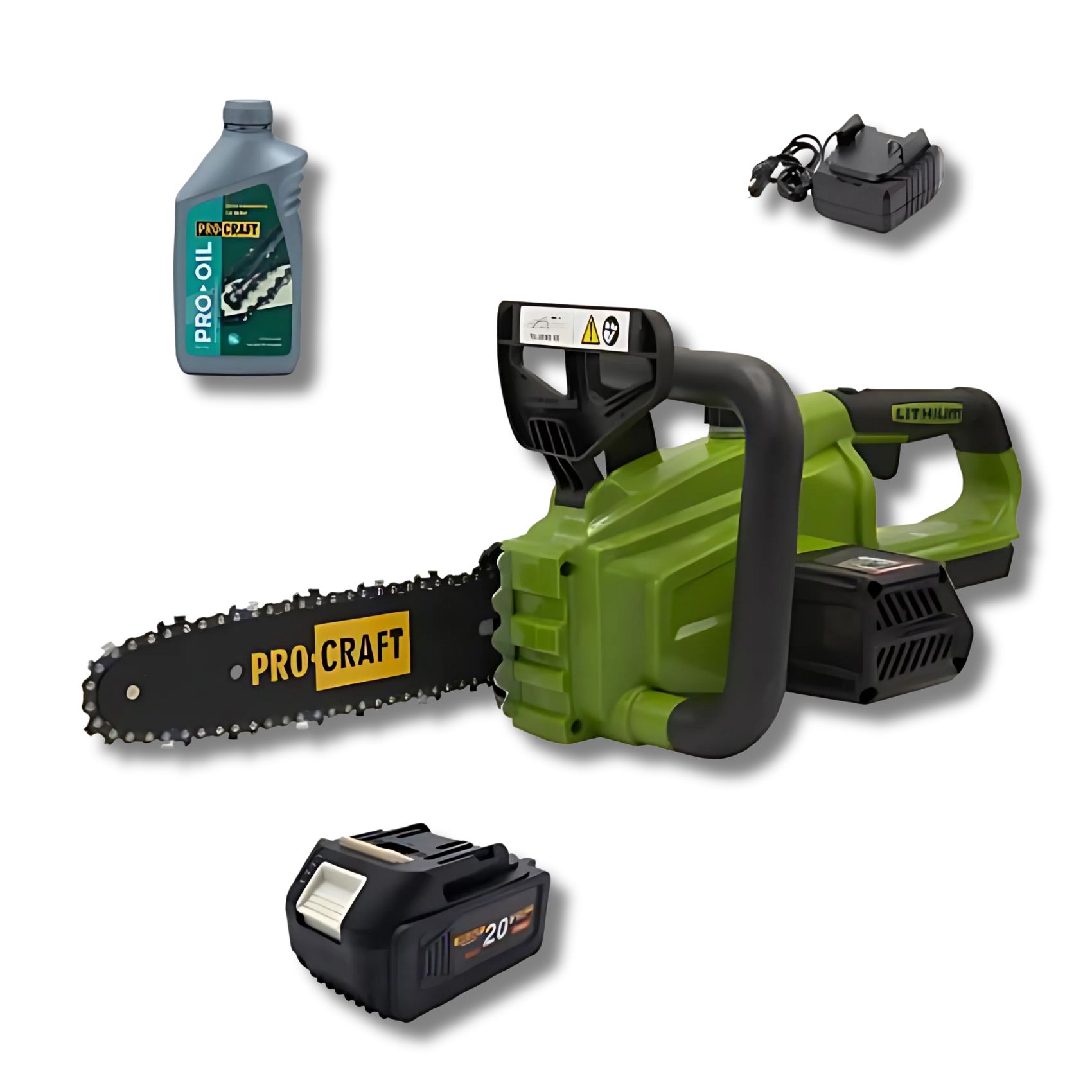 Набір Пила ланцюгова акумуляторна PRO-CRAFT PKA36/Батарея 20/4UNIVERSAL/Зарядний пристрій 20/1/Олива 1л має декілька переваг: потужний двигун забезпечує високу продуктивність роботи, акумуляторна батарея гарантує безперебійне живлення, зарядний пристрій дозволяє швидко заряджати батарею, олива для ланцюга забезпечує його змащення та збільшує термін експлуатації.
