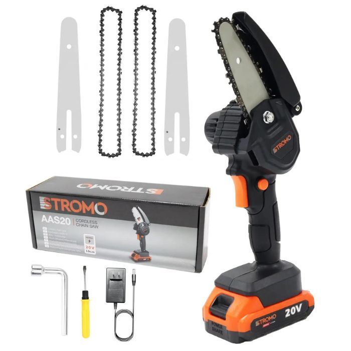 Акумуляторна мініпила Stromo AAS20 має високу мобільність і легку вагу всього 1.4 кг, включно з батареєю. Вона стає незамінним помічником для обрізання дерев і чагарників, а також під час оброблення, рубання й обрізання по довжині дощок, квадратної та круглої деревини. Цей універсальний інструмент ідеально підходить для власників земельних ділянок і садів, а також для ремісників.