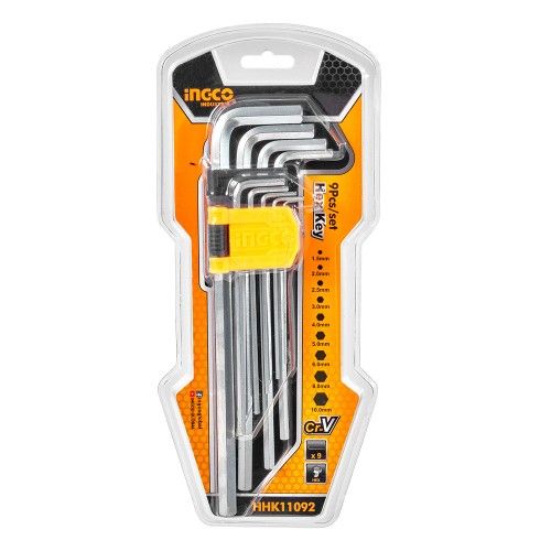 Набір подовжених шестигранних ключів 9 шт. 1,5–10 мм INGCO - незамінний інструмент для професіональних та домашніх потреб. Виготовлені з високоякісного хромванадієвого сплаву CrV, ці ключі володіють надійністю та довговічністю. Завдяки термообробці та хромованому покриттю, вони мають міцну структуру та стійкість до корозії. Розмір ключа в діапазоні 1,5-10 мм дозволяє виконувати роботу з різними габаритами гайок та болтів. Цей набір є незамінним інструментом для автомобілістів, будівельників, механіків та всіх, хто займається ремонтом або складанням меблів. Він поставляється у зручному пластиковому кейсі, що дозволяє легко зберігати та переносити інструмент.