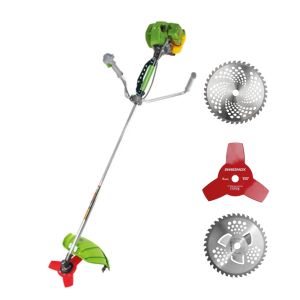 Технічні характеристики:Напруга: бензиновий двигун 2тактний; Робочий об’єм двигуна: 52см; Максимальна потужність: 4200Вт; Частота обертів шпинделя: до 9000об/хв; Ємність паливного баку: 1,2л; Ширина захоплення при роботі волосінню: 415мм; Тип штанги: цільна, нероз’ємна, діаметр 28мм; Рекомендована ширина диска: 255мм або 254мм (диск 40 зубців); Захисний кожух: присутній; Тип запуску: ручний (легкий старт без курка); Вага: 8,0кг; Рівень звукового тиску LpA: ~105дБ (А); Рівень звукової потужності LwA: ~104дБ (А); Гарантія: 12 місяців.