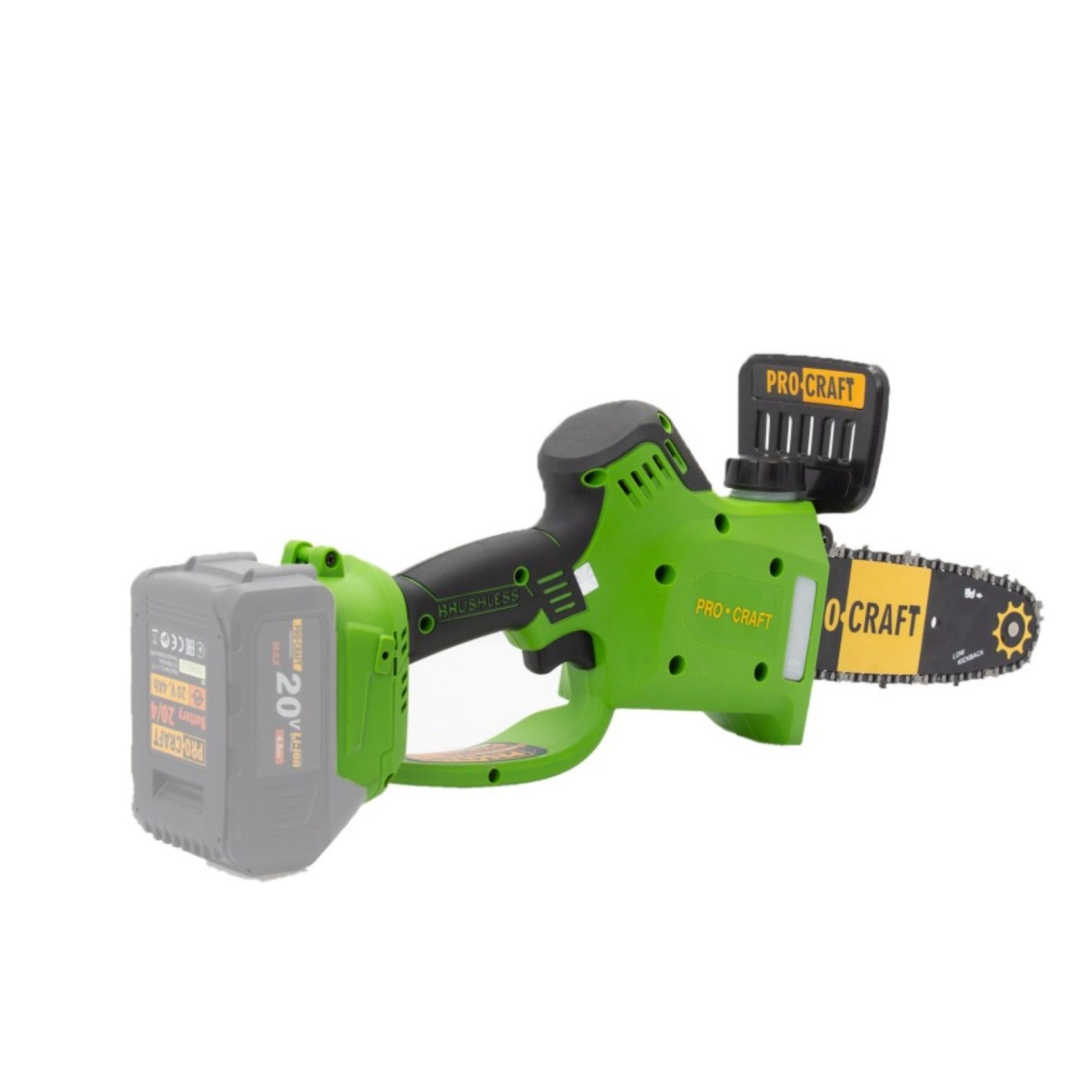 Особливістю Procraft РКА 20/4 є її ергономічний дизайн і функції, такі як автоматичне змащування ланцюга та датчик зарядки акумулятора. Компактна довжина шини 200 мм дозволяє працювати в важкодоступних місцях, а її невелика вага (1.5 кг) робить інструмент зручним для транспортування і використання навіть на пікніку.