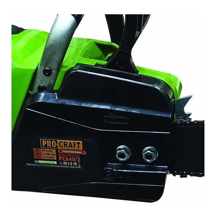 Переваги набору Procraft Пила ланцюг.PCA40/4/2: потужний безщітковий двигун, надійність та безпека користування.