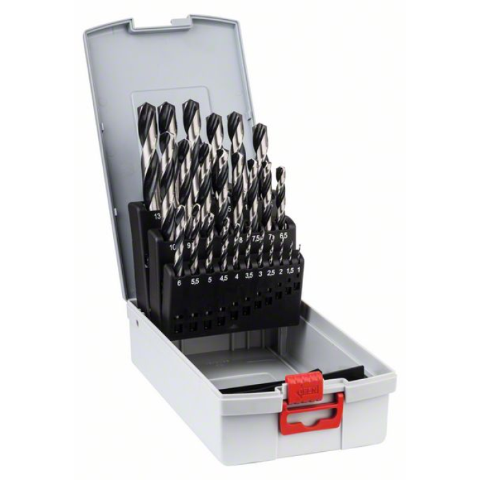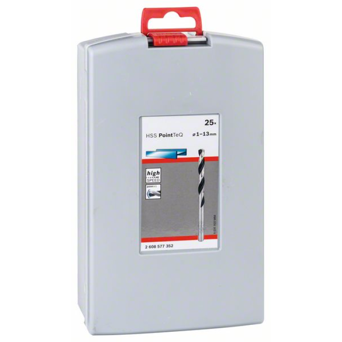 Набір свердл по металу Bosch забезпечить вам високу якість та точність сверлення. Цей набір містить 25 свердел від 1 мм до 13 мм із вуглецевої сталі HSS PointTeQ. Вони ідеально підходять для сверлення по металу, алюмінію та інших твердих матеріалів. Кожен свердло має гострий метчик для точного початку сверлення і додаткової заточки для швидкого проникнення. Замінний набір від Bosch - надійний помічник для вашої майстерні.