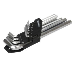 Набір торцевих ключів TORX подовжених 9од Cr-V T10-T50 виконаний з хром-ванадієвої сталі. Форма ключа - Г-подібна. Торцеві ключі призначені для викручування гвинтів зі спеціальними головками типу TORX. Ключі мають подовжений гальмівний важіль, що полегшує роботу важкодоступних місцях. Виготовлені з високоякісної хром-ванадієвої сталі, що забезпечує міцність і тривалу експлуатацію. Набір включає 9 ключів різних розмірів T10-T50, що покривають широкий діапазон робочих завдань. Використовуються в автомобільній промисловості, машинобудуванні та інших галузях промисловості.