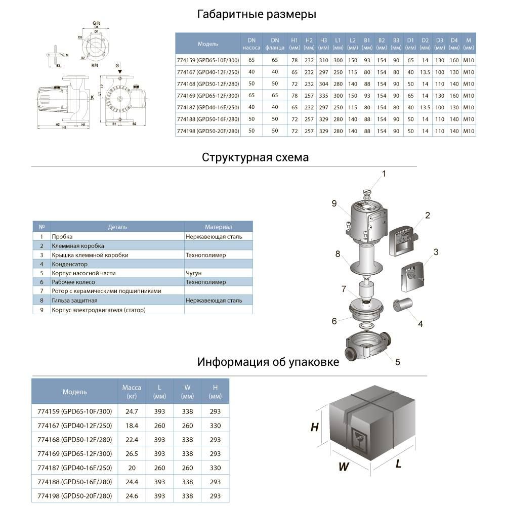 Насос циркуляційний фланцевий 1.0кВт Hmax 16.3м Qmax 250л/хв DN40 250мм + приєднувальний фланець AQUATICA (774187)