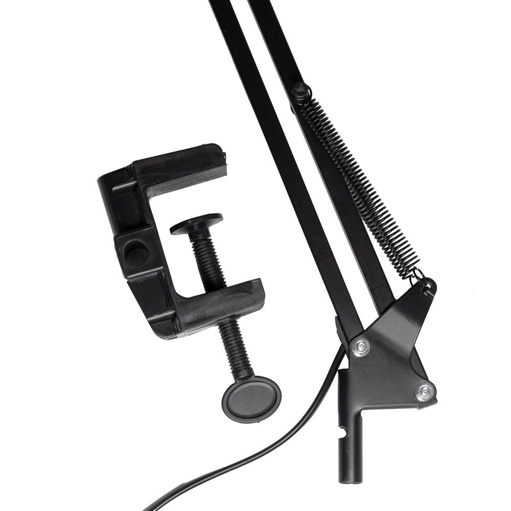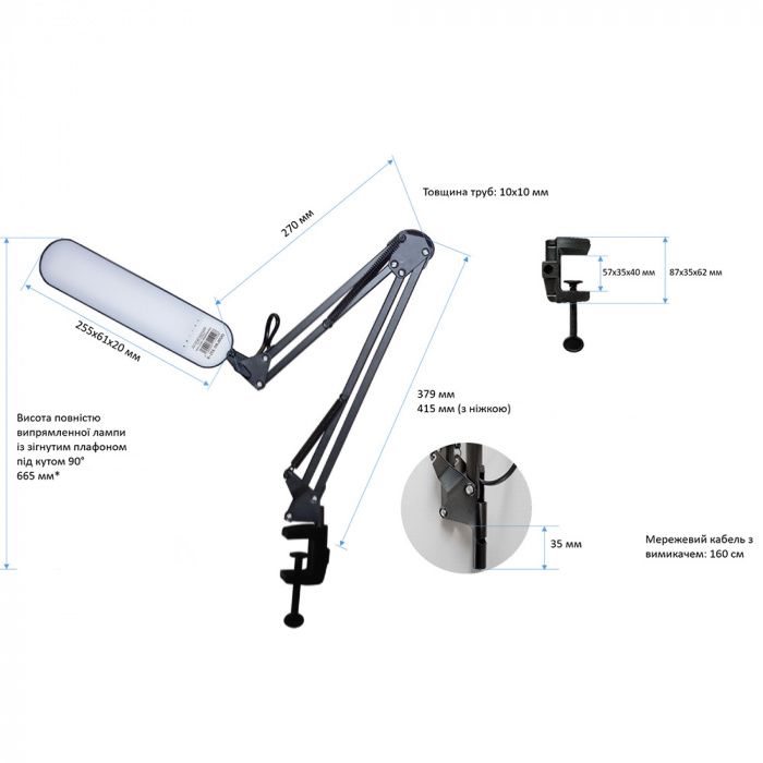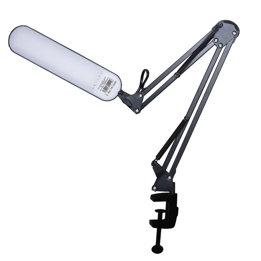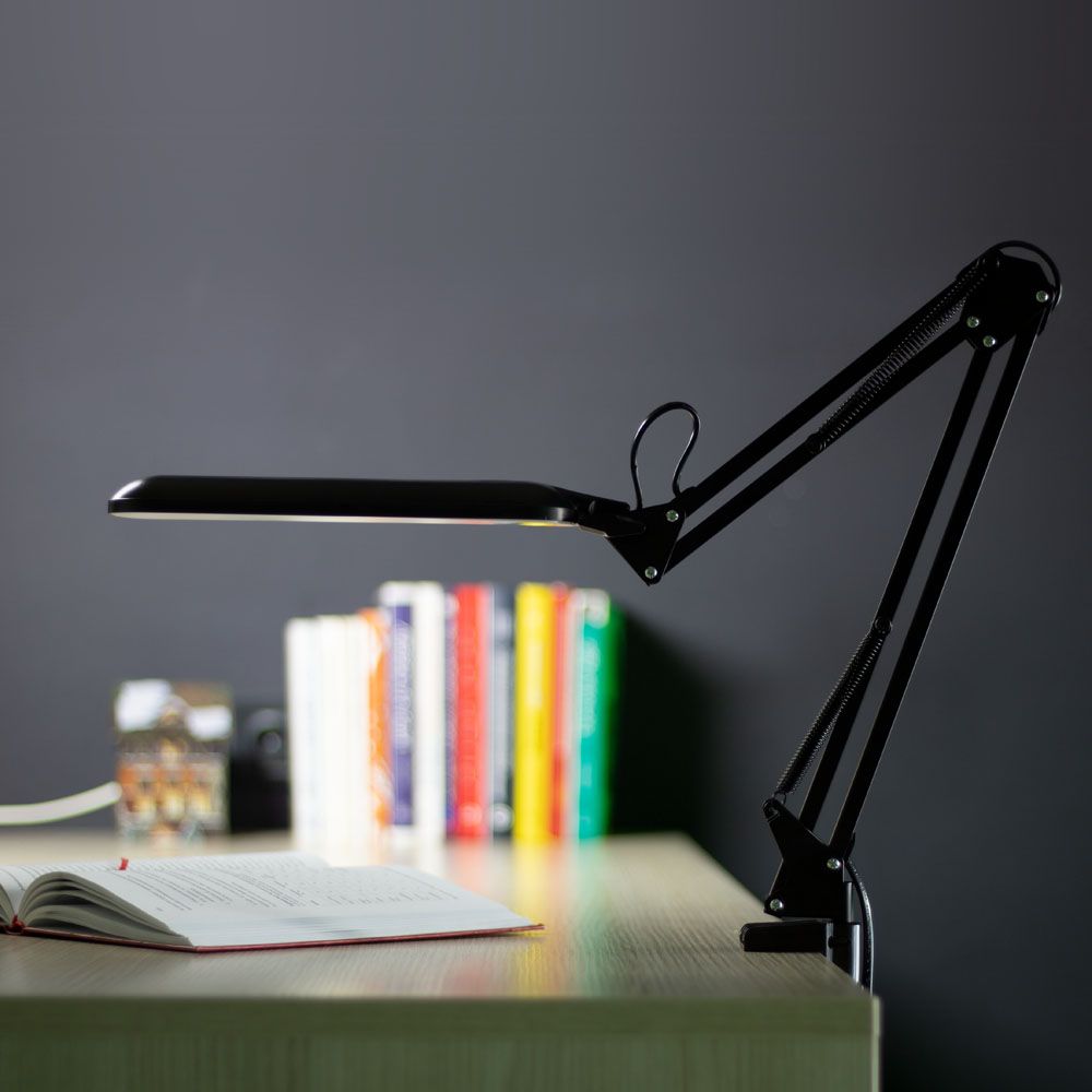 Лампа кріпиться за допомогою струбцини до краю столу, полиці або іншої поверхні. Таке кріплення звільняє робочу поверхню й дозволяє встановити лампу там, де це справді зручно, навіть якщо місця на столі обмаль.