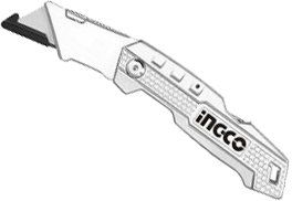 Ніж складаний алюмінієвий, 5 лез трапеція SK5 INGCO ідеально підходить для різання паперу, картону, тканини, шкіри та інших матеріалів.