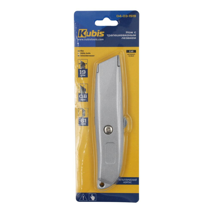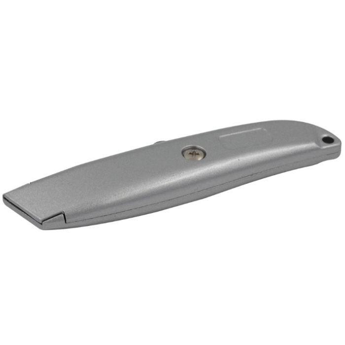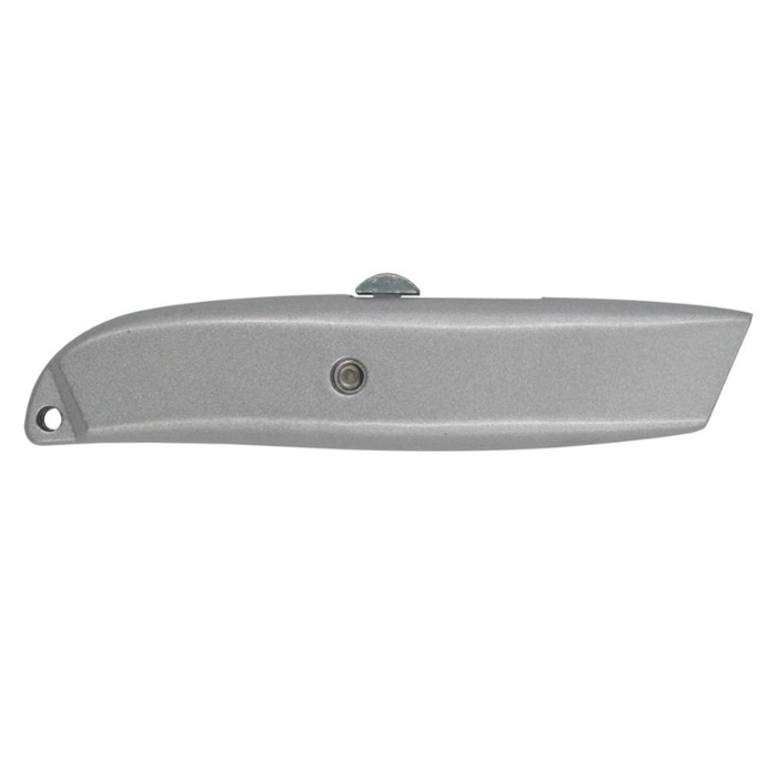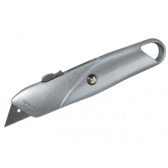 Ніж з трапецієподібним лезом, металевий. Ширина леза: 9 мм. Ручка виготовлена з комбінованого матеріалу. Лезо є сегментованим, що дозволяє легко замінити його при необхідності. Застосовується для різних завдань завдяки своїй універсальності. Максимальний розмір розкривання становить 100 мм. Даний ніж не має в комплекті додаткових лез.
