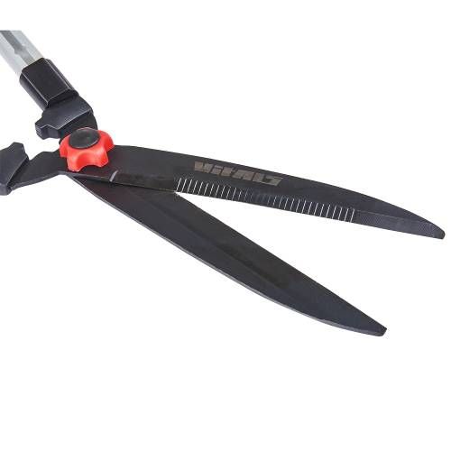Телескопічні ножиці для живої огорожі Vitals HS-730-01T - ідеальний інструмент для обрізки і підтримки форми живої огорожі. Виготовлені з якісних матеріалів, ці ножиці є надійним та довговічним рішенням для догляду за вашою огорожею. Вага ножиць становить 1135 г, що забезпечує комфортну роботу без зайвого навантаження на руки. Завдяки телескопічному дизайну, вам не потрібно буде займатися лазінням під час обрізки, оскільки ніжки можна регулювати під потрібну висоту. Надійна фіксація ніжок дозволяє виконувати роботу стабільно і безпечно. Компактні розміри ножиць дозволяють легко зберігати їх після використання. Велике лезо забезпечує широкий захват із забезпеченням чистого та рівного розрізання галузок. Ручки із зручними покриттям забезпечують комфортну роботу без подразнення шкіри рук. Ножиці для живої огорожі Vitals HS-730-01T - ваш надійний помічник у догляді за рослинами.