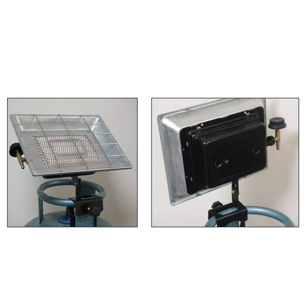 Обігрівач виконаний у металевому корпусі з решіткою для захисту керамічного пальника та підставкою. Завдяки решітці та зручній, регульованій підставці, обігрівач можна використовувати не тільки для обігріву, але й для приготування їжі або кип'ятіння рідини.