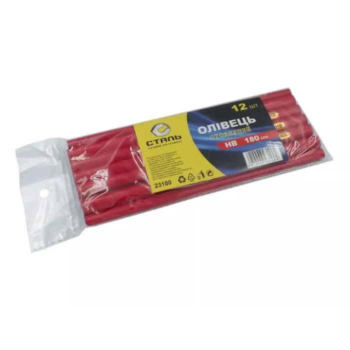 Олівець столярний "Сталь" 180 мм – це надійний інструмент для точного нанесення розмітки на різних будівельних матеріалах. Його сірий стрижень забезпечує чіткі лінії, що добре видно на дереві, металі та інших поверхнях. Олівець має довжину 180 мм, що робить його зручним для використання в майстерні чи на будівельному майданчику. В упаковці 12 штук, що забезпечує достатній запас для тривалих робіт.