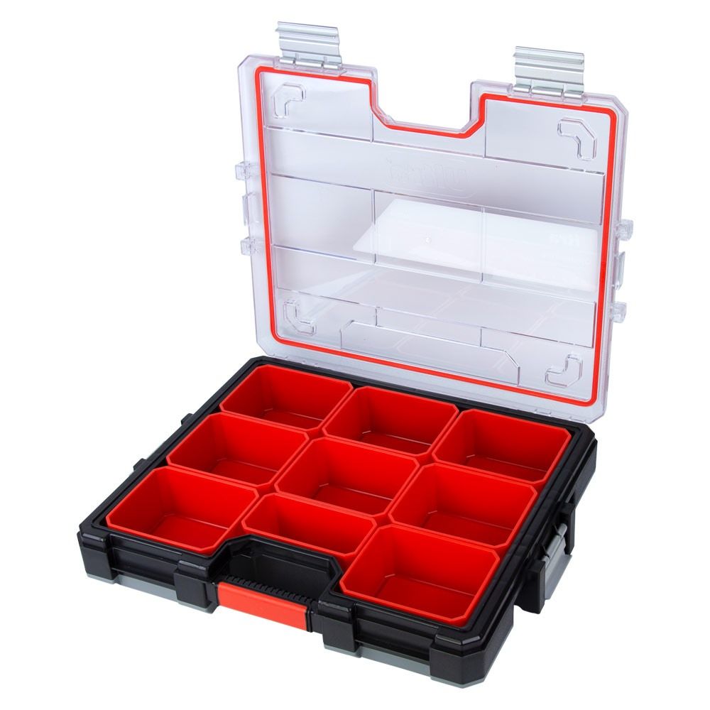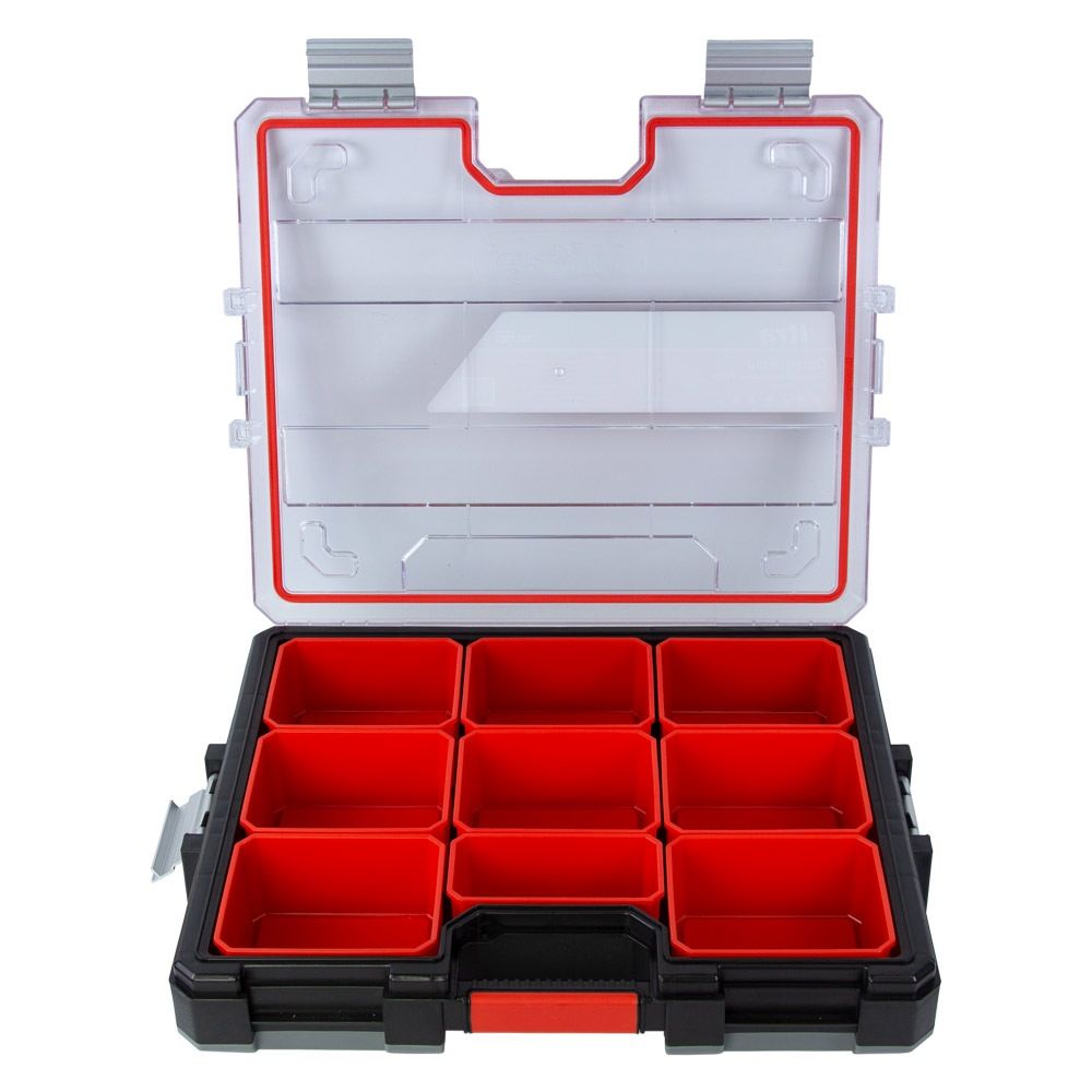 Наявність кількох секцій забезпечує швидкий пошук необхідних предметів. Органайзер функціональний і підходить для широкого спектра завдань: від побутового використання до професійної діяльності. Його можна застосовувати для перенесення індивідуальних інструментів, комплектації наборів деталей, організації робочого простору у майстерні, гаражі, СТО, а також для зберігання дрібних речей під час відпочинку, риболовлі чи рукоділля.