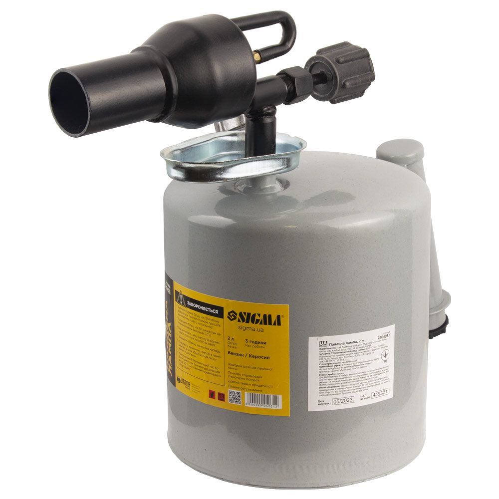 Паяльна лампа (тип Україна) 2.0л SIGMA (2904031) є високотемпературним нагрівальним приладом, призначеним для застосування в виробничих і побутових умовах для ремонтних робіт, пайки, термообробки дрібних деталей, нагрівання судин з незаймистою рідиною і т.д.