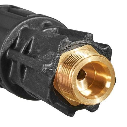 Універсальність: Перехідник сумісний з різними типами насадок, що дозволяє використовувати його з різноманітними мийками високого тиску.