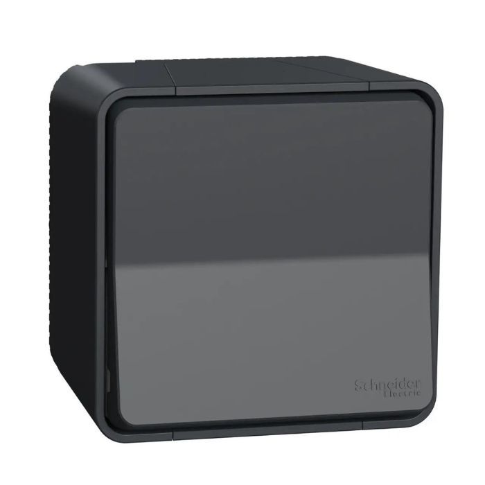 Перемикач одноклавішний у зборі IP55 зовнішній монтаж, чорний, Mureva Styl. Цей перемикач вимикачає і включає електричні контури у вашому будинку або квартирі. Він має один роз'єм, який забезпечує зручну підключення до електричної мережі. Чорний колір робить його стильним і сучасним. Він призначений для зовнішнього монтажу, що забезпечує йому захист від вологи (IP55 ступінь захисту). Цей перемикач має без підсвітки, що додає йому елегантності і простоти. Встановлюйте цей перемикач у своєму будинку і отримуйте зручне та безпечне управління електричними контурами.