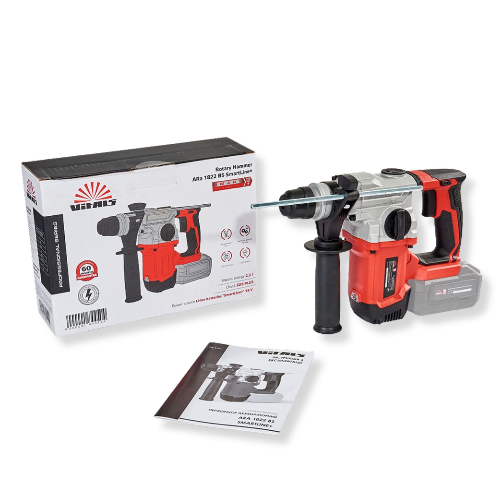 Додаткові унікальні властивості та переваги перфоратора акумуляторного Vitals Professional ARa 1822 BS SmartLine+: компактні розміри і легка вага забезпечують зручність в роботі; легка заміна свердел і буров впливає на зменшення часу переходу від одного виду робіт до іншого; система зміни обертального і пробивного режимів дозволяє виконувати різні завдання. Всі ці особливості роблять перфоратор акумуляторний Vitals Professional ARa 1822 BS SmartLine+ незамінним інструментом для будівельних та ремонтних робіт.
