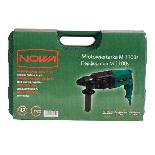 Перфоратор NOWA M 1100s також має інші унікальні властивості і Переваги: ергономічний дизайн забезпечує комфортне використання; надійна конструкція забезпечує довгий термін служби; широкий діапазон застосування; можливість регулювання глибини свердління.