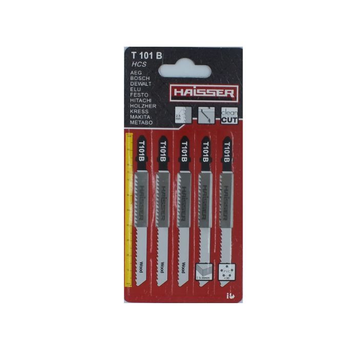 Пилочне полотно HAISSER T 101 B призначене для різання м'якої деревини, столярної плити ДСП та ДВП. Робочий матеріал складається з високовуглецевої сталі, що забезпечує йому стійкість та довговічність. Має прямий тип розрізу, що дозволяє точно різати матеріал. Робоча довжина полотна складає 75 мм, що дозволяє проводити роботу з високою точністю. Це ідеальний інструмент для використання з електролобзиком. Чудово підходить для професійної та домашньої роботи.