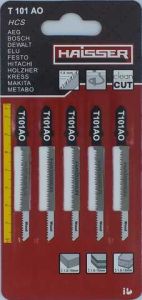 Пилочне полотно HAISSER T 101AO набір - 5шт 50 мм призначене для роботи з м'якою деревиною та столярною плитою з покриттям. Виготовлене із високоякісного матеріалу HCS, який забезпечує довгу службу пилки. Полотна мають фігурний тип розрізу, що дозволяє зробити різні види різів. Робоча довжина полотна становить 50 мм, що робить його універсальним і зручним для роботи з різними матеріалами. Цей набір полотен призначений для використання з електролобзиком і дозволить вам легко та швидко виконувати різні роботи з обробки дерева.