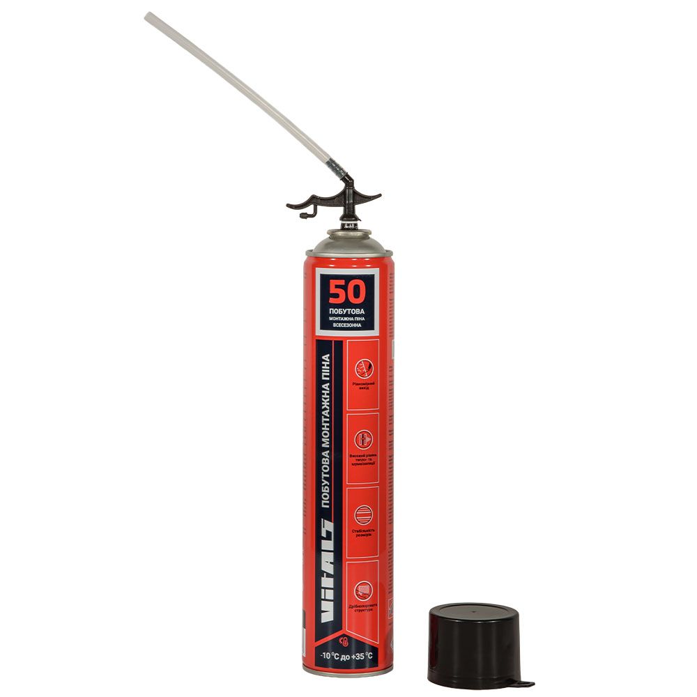 Монтажна піна Vitals Fix всесезонна (балон 750 мл) із трубочкою — однокомпонентна поліуретанова піна для побутового застосування.