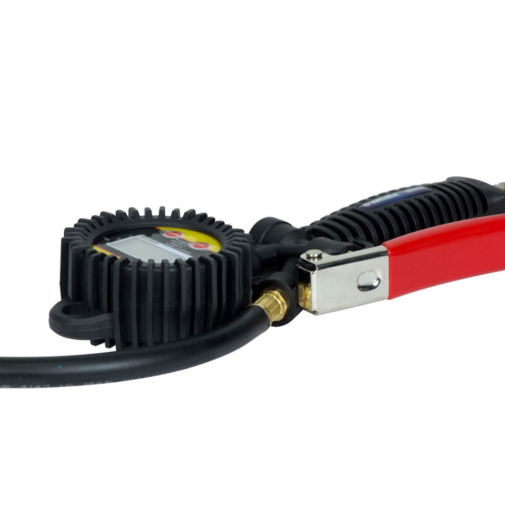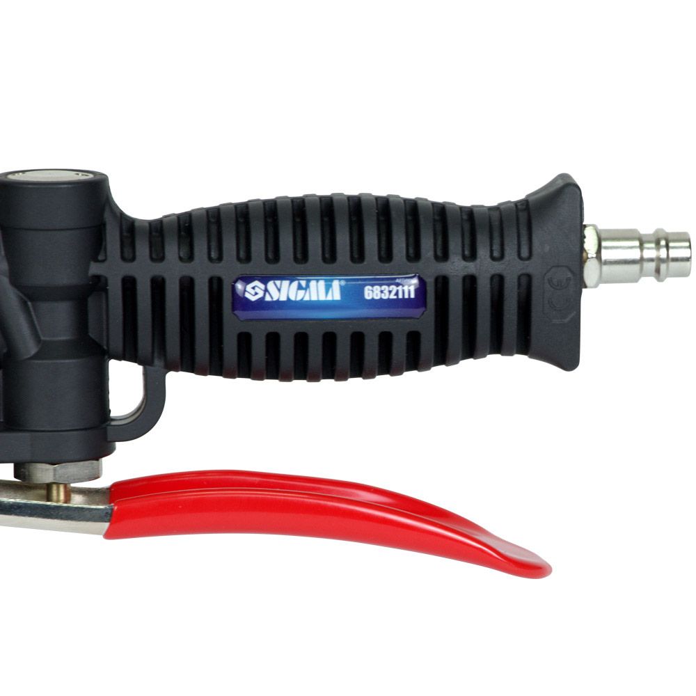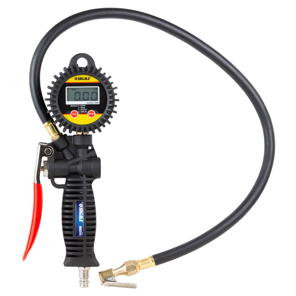 Пневмопістолет для підкачки з цифровим манометром 85-200 л/хв, 12 бар SIGMA (6832111) застосовується для підкачки шин автомобілів. Зручний гнучкий шланг дозволяє виконувати операції в важкодоступних місцях.