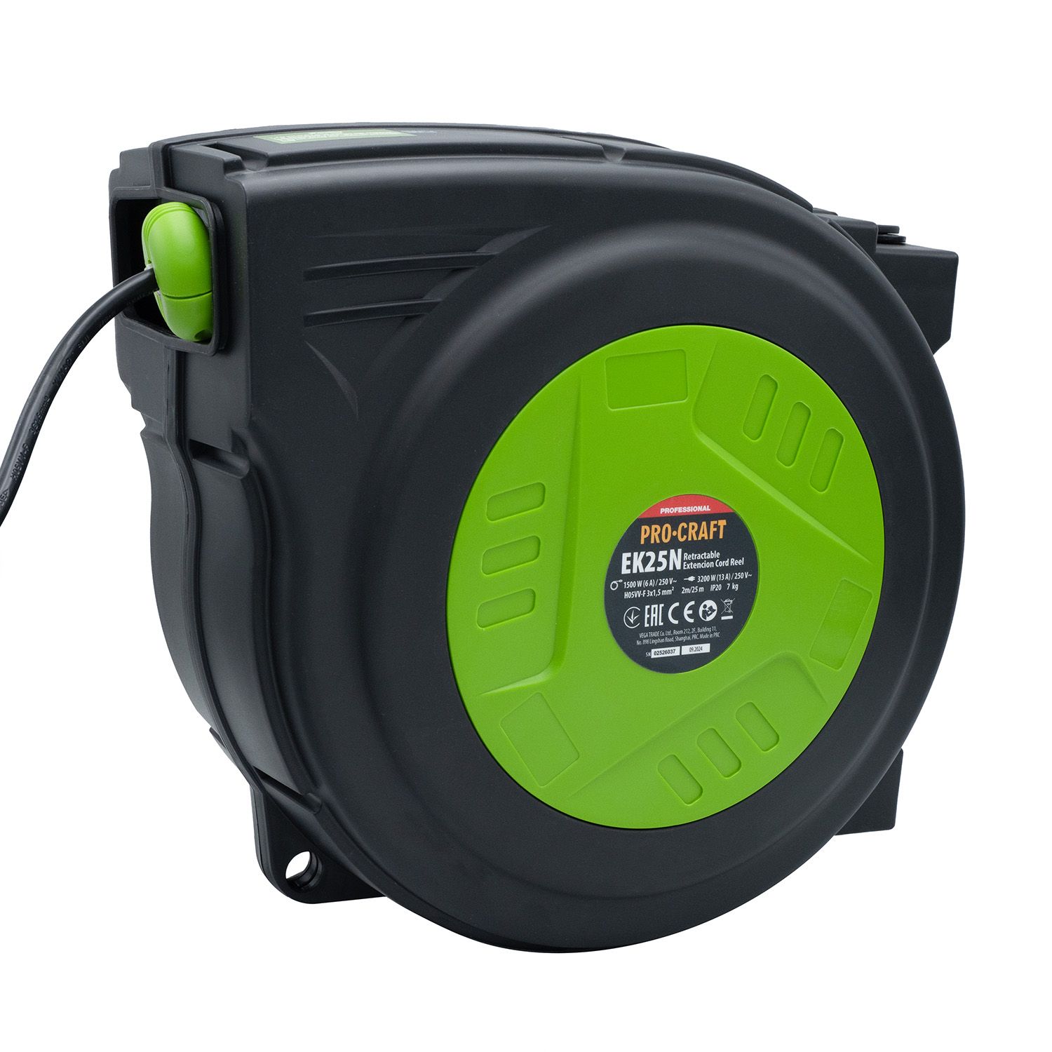 Подовжувач Procraft EK25N із кабелем довжиною 25 метрів — надійне рішення для роботи з електроінструментами та побутовою технікою.